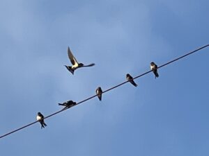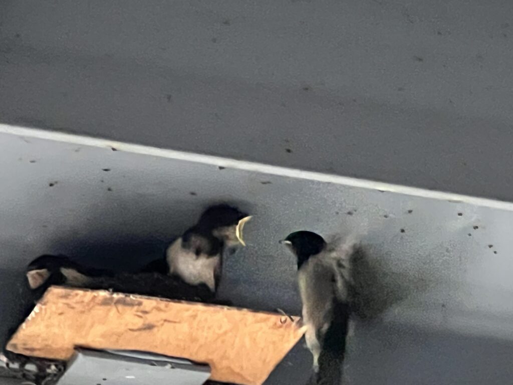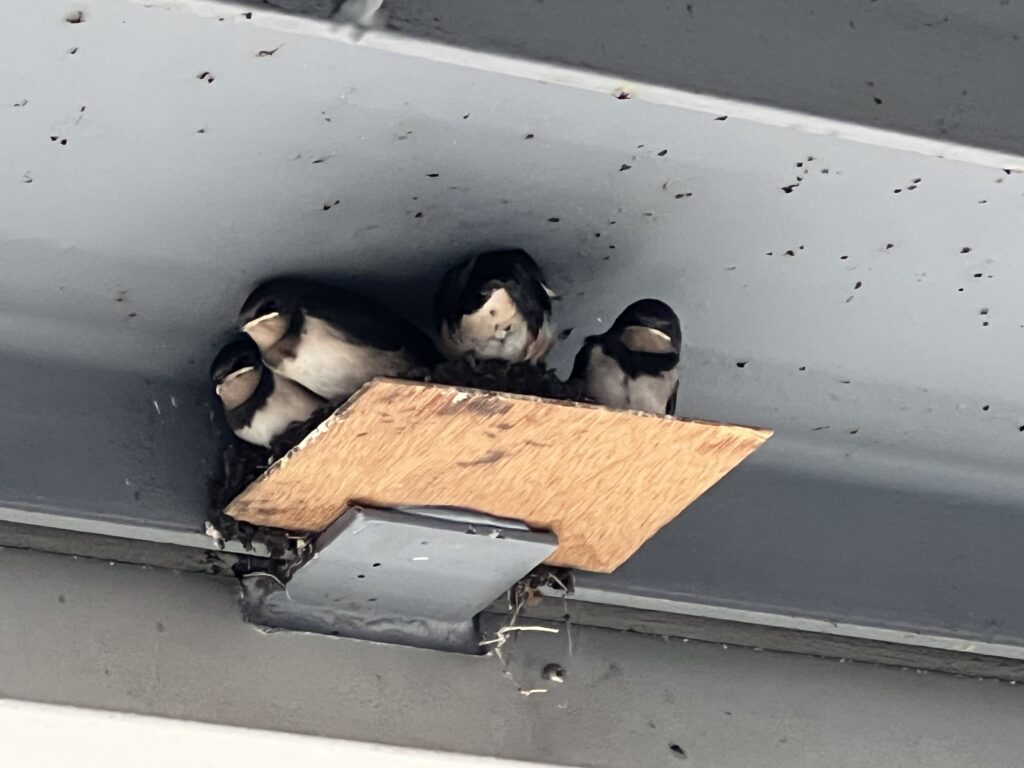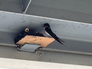 店のツバメのヒナ達は2番手です。仲間のツバメが連日集まり